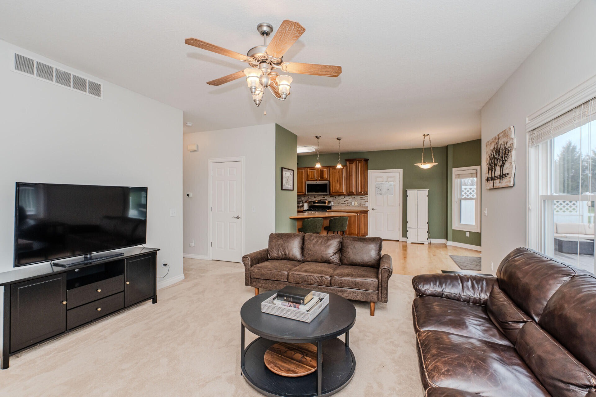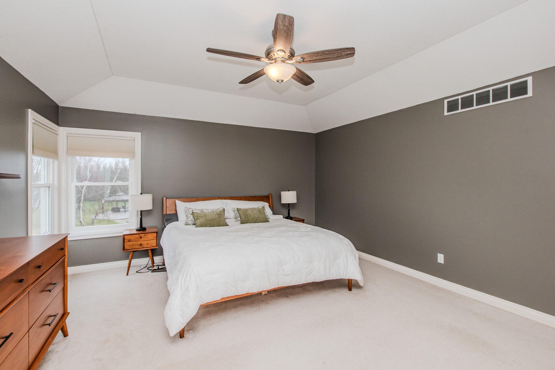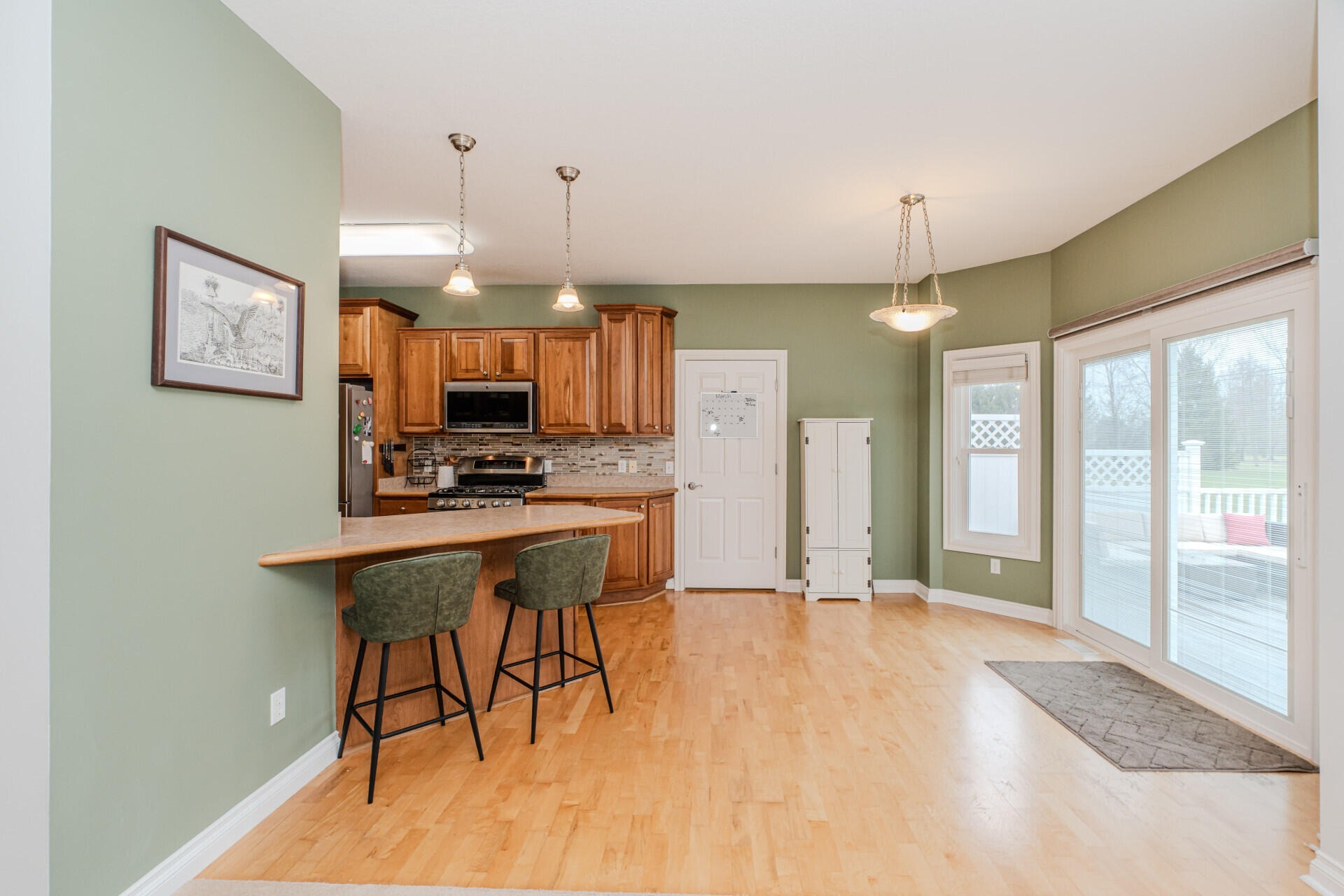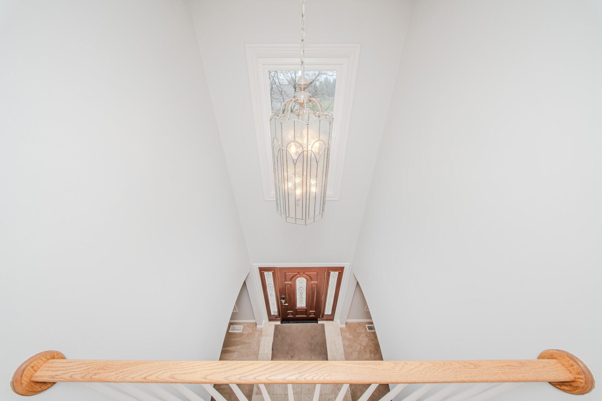 Welcome to this charming 3-bedroom, 2.5-bath colonial in Wolf Lake Highlands, set on a beautifully landscaped .93-acre lot in Grass Lake Township. A covered front porch and grand two-story marble foyer create a strong first impression, with arched entryways leading to a flexible front room, formal dining area, and a well-appointed kitchen featuring 42-inch maple cabinets, stainless steel appliances, and a peninsula overlooking the breakfast nook. The adjoining family room offers a gas fireplace and an easy flow for everyday living. Upstairs, the primary suite includes a tray ceiling, spa-like bath with soaking tub, separate shower, dual sinks, and generous closet space. Two additional bedrooms share a full bath, and brand-new Pella windows with a transferable warranty add peace of mind. The finished lower level expands your living space with a recreation room, second gas fireplace, workout area, workshop, and ample storage. Additional highlights include a first-floor laundry room, half bath, and 2.5-car attached garage. Step outside to a Brazilian hardwood deck, spacious backyard, and patio with a large hot tub—perfect for relaxing or entertaining.