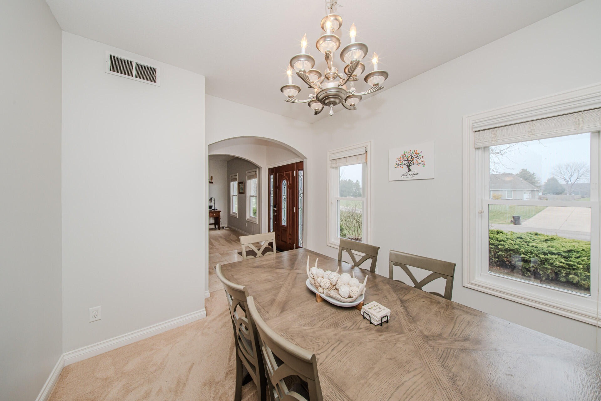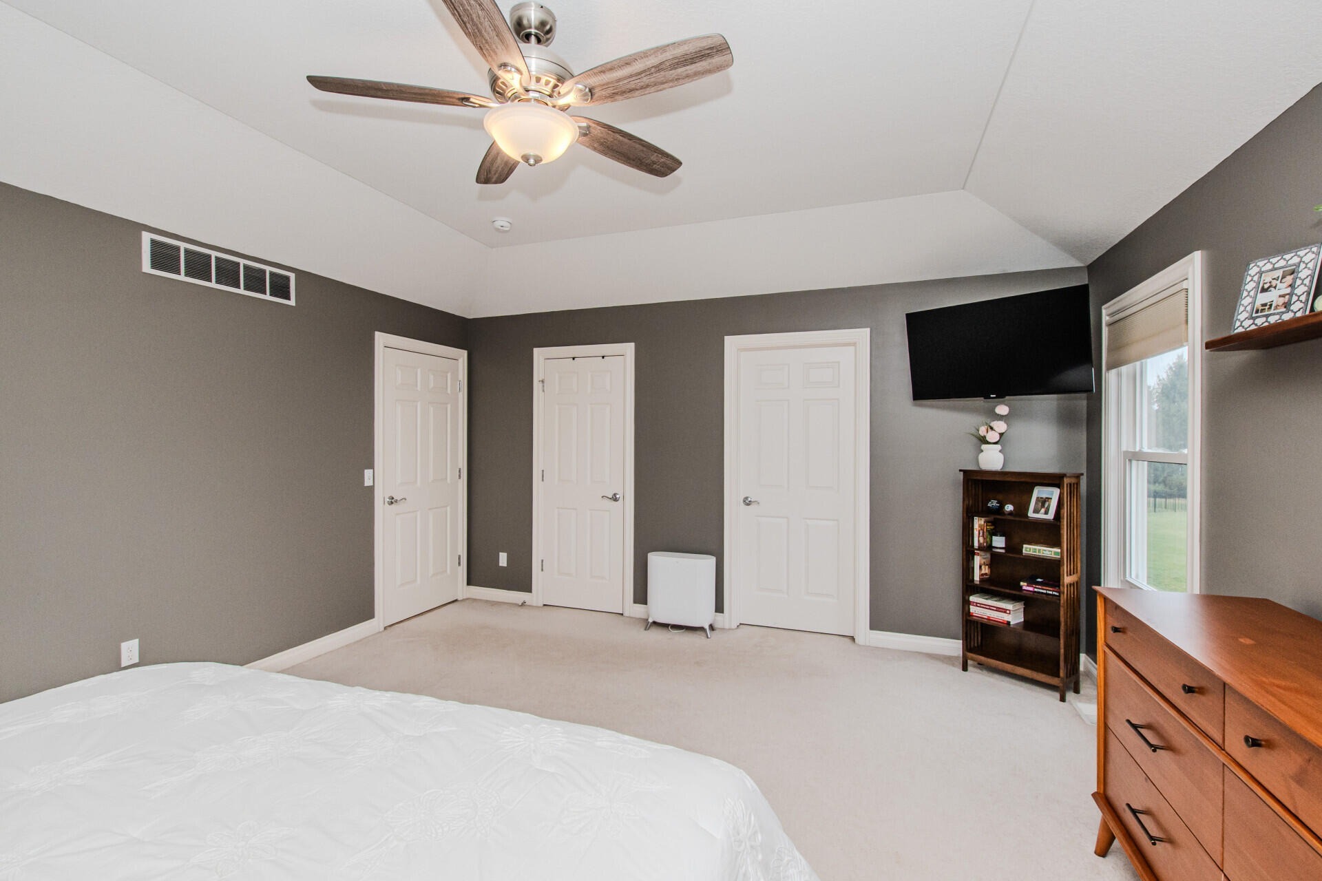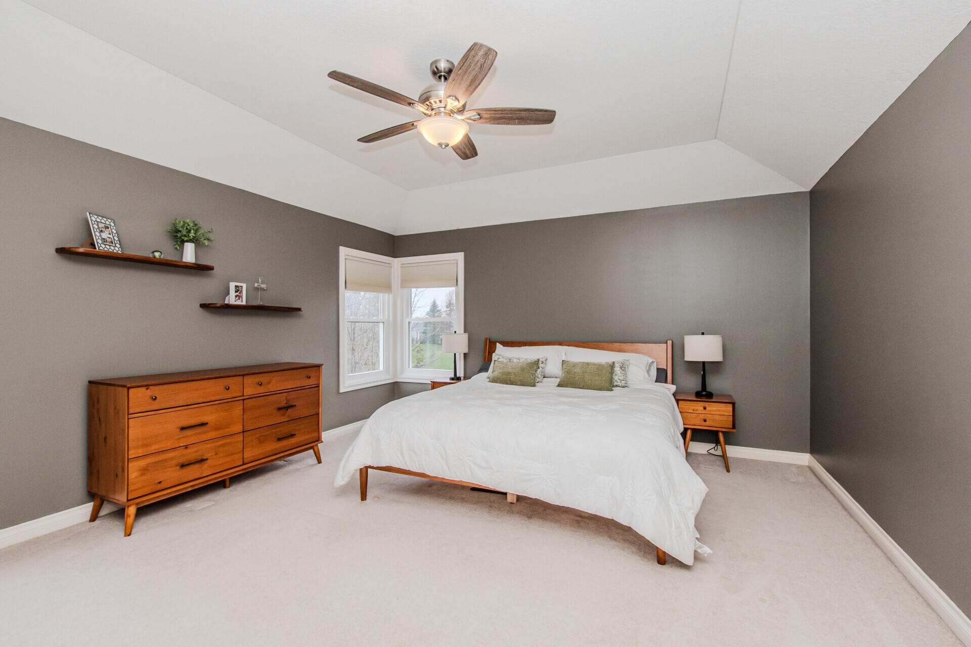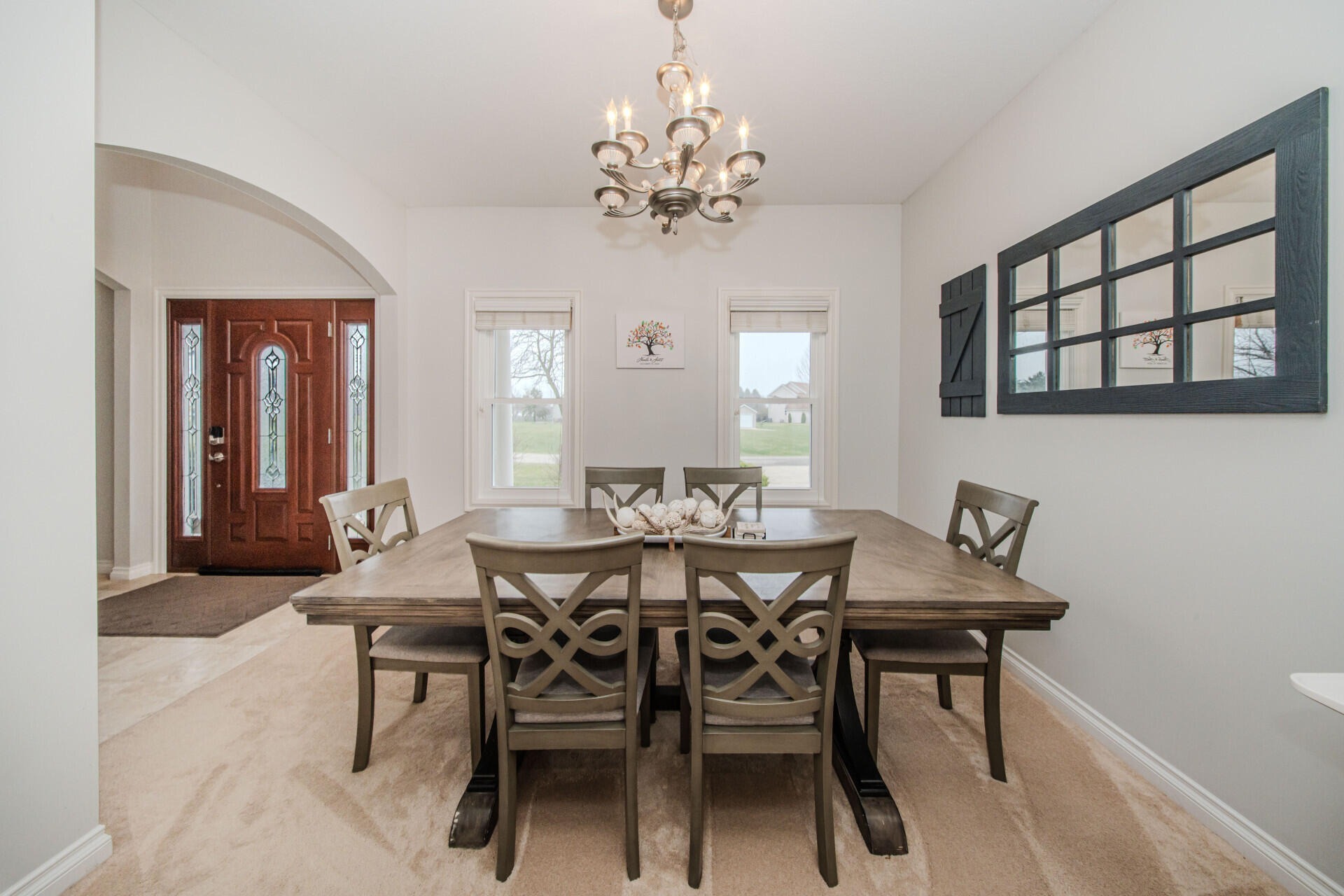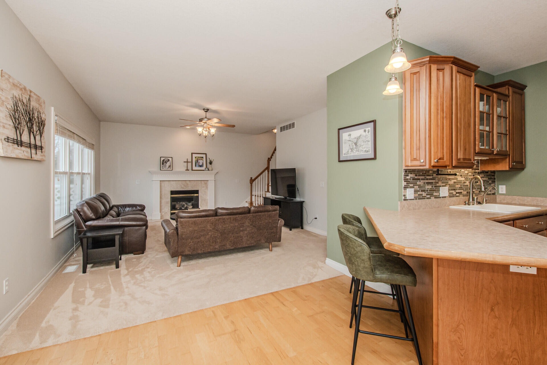 Welcome to this charming 3-bedroom, 2.5-bath colonial in Wolf Lake Highlands, set on a beautifully landscaped .93-acre lot in Grass Lake Township. A covered front porch and grand two-story marble foyer create a strong first impression, with arched entryways leading to a flexible front room, formal dining area, and a well-appointed kitchen featuring 42-inch maple cabinets, stainless steel appliances, and a peninsula overlooking the breakfast nook. The adjoining family room offers a gas fireplace and an easy flow for everyday living. Upstairs, the primary suite includes a tray ceiling, spa-like bath with soaking tub, separate shower, dual sinks, and generous closet space. Two additional bedrooms share a full bath, and brand-new Pella windows with a transferable warranty add peace of mind. The finished lower level expands your living space with a recreation room, second gas fireplace, workout area, workshop, and ample storage. Additional highlights include a first-floor laundry room, half bath, and 2.5-car attached garage. Step outside to a Brazilian hardwood deck, spacious backyard, and patio with a large hot tub—perfect for relaxing or entertaining.