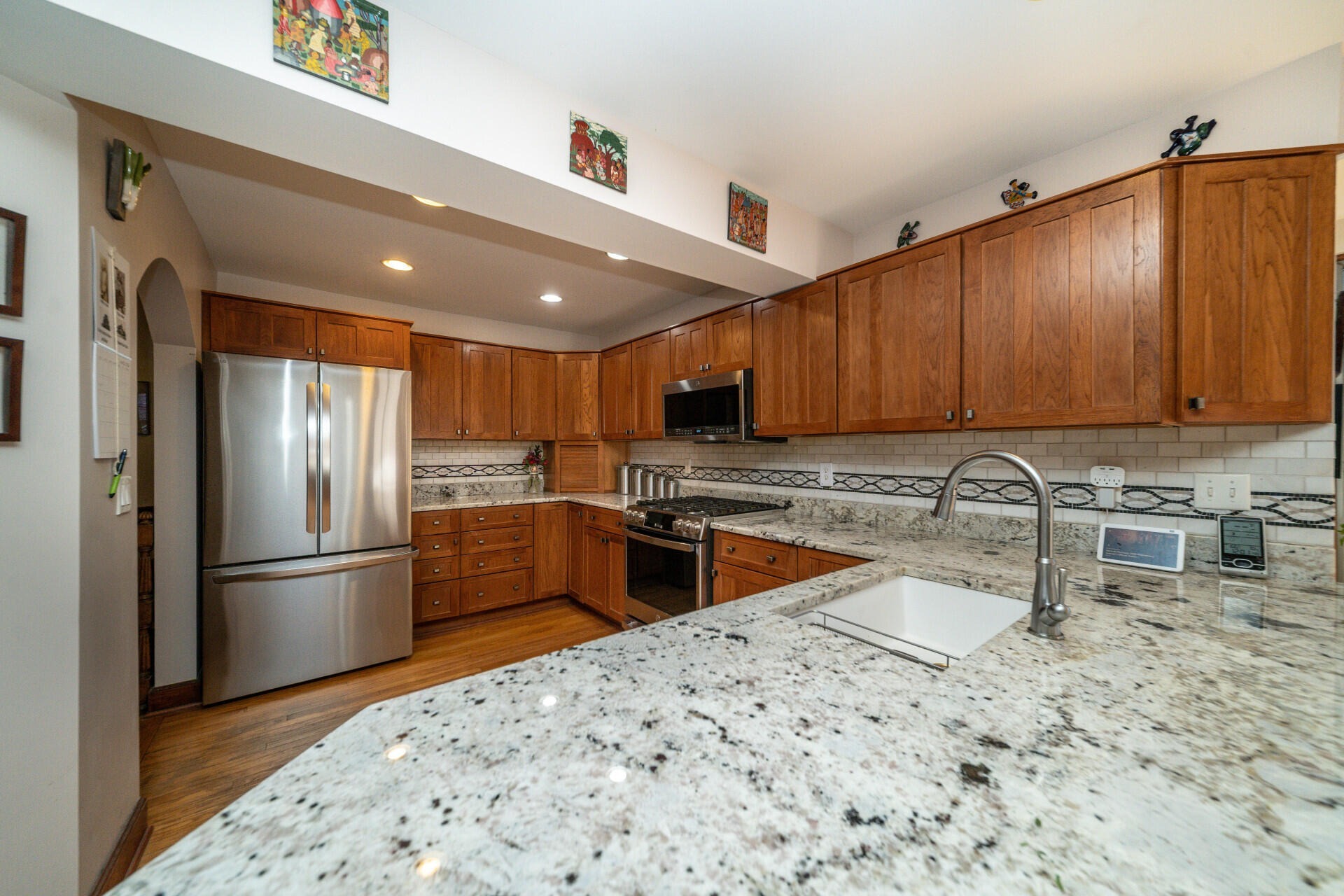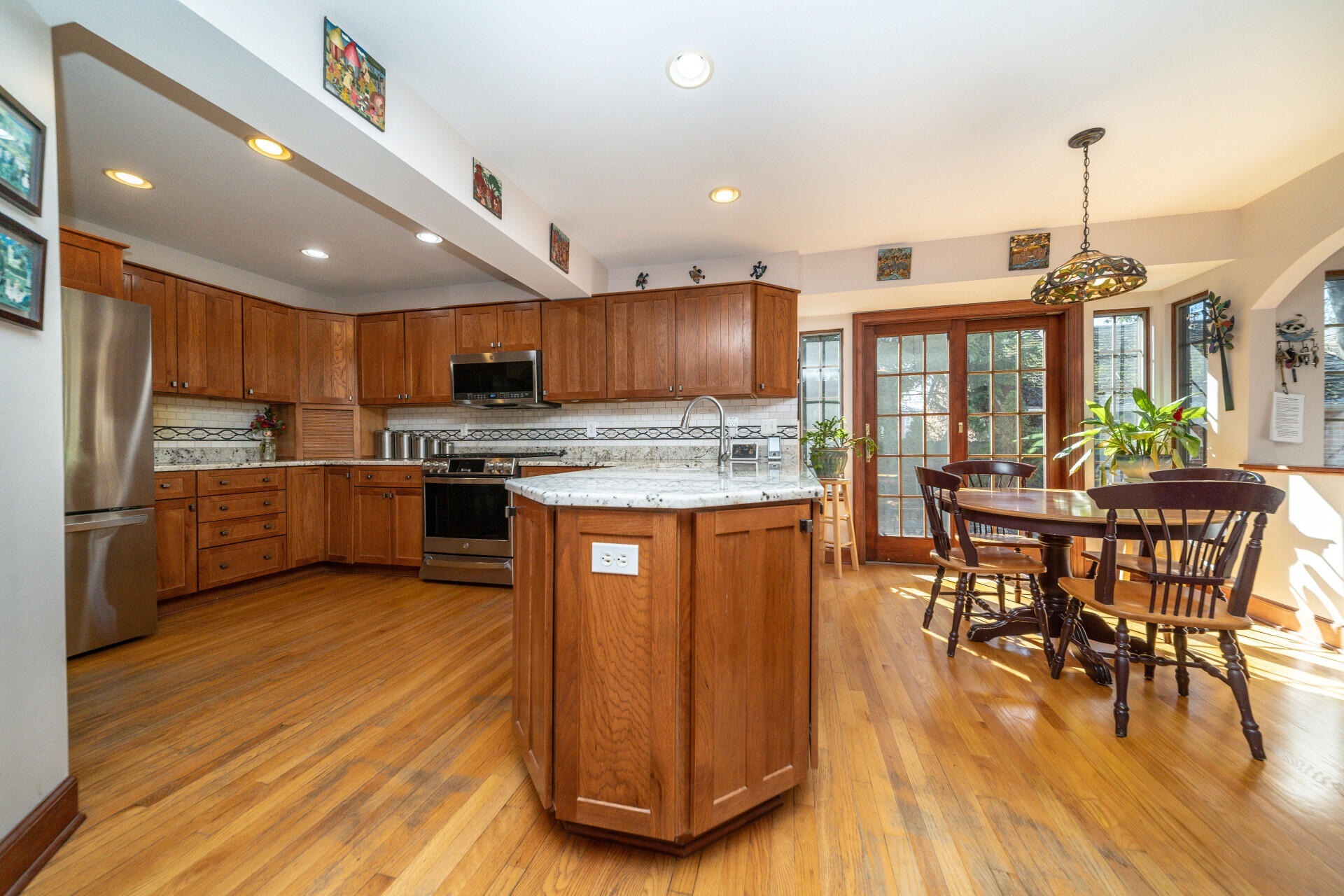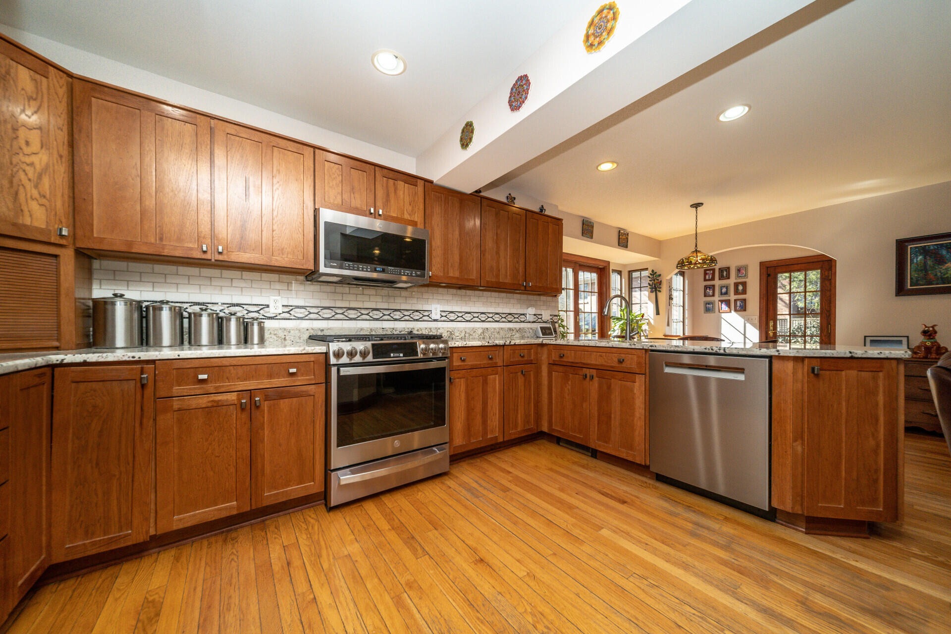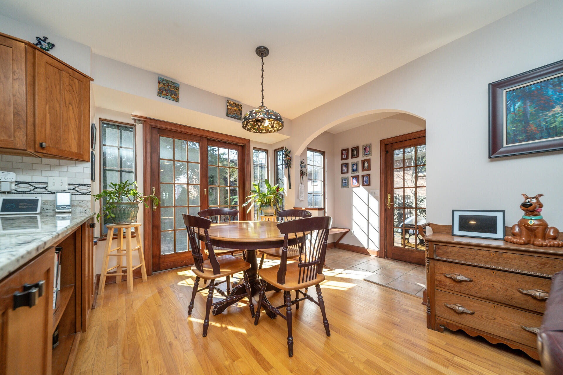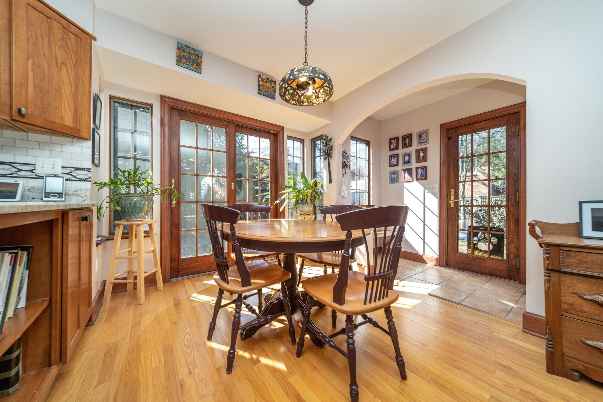 Step into this classic Burns Park brick Tudor, lovingly maintained by just four owners. From the original 1930s tiled vestibule to the arched doorways, hardwood floors, and built-ins, the home is rich in historic character. Ideally located just steps from Burns Park Elementary and the park, you can enjoy the neighborhood’s energy right from your front porch. The multi-level layout offers flexible living spaces, perfect for guests or multi-generational living. A charming living room with a gas fireplace opens to a private brick courtyard, while the formal dining room flows into a sun-filled family room addition. The updated kitchen features custom cherry cabinetry, granite countertops, stainless steel appliances, and a bright breakfast nook with access to the yard and mudroom. Upstairs, the primary suite includes a spa-like bath, walk-in closet, and in-suite laundry. Additional bedrooms and loft spaces provide versatility, while the finished lower level adds extra living, workout, and storage areas. Outside, enjoy a private patio, detached garage with carport, and mature landscaping. Major updates include windows, HVAC, electrical, and a whole-house generator. A rare blend of historic charm and modern comfort in a prime location.