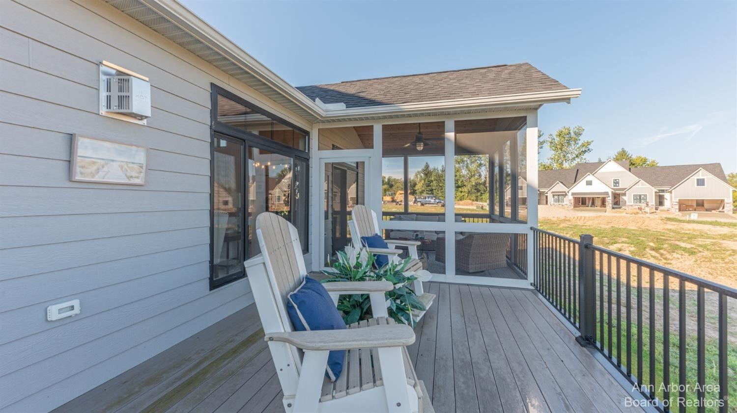Welcome to Gallery Pointe! Nestled on a premium walkout homesite overlooking mature trees, open green space, and a 26-acre Nature Preserve, this Cypress-S floor plan blends style and functionality. The gourmet kitchen features a large island, granite countertops, 42" cabinetry, and a double wall oven, opening to a spacious dining and family area that leads to a screened porch and grill deck. A first-floor study and half bath complete the main level. Upstairs, the primary suite offers a custom walk-in closet, dual sinks, and a large tiled shower, with convenient upstairs laundry near the three bedrooms. The finished lower level includes a recreation room with kitchenette, fourth bedroom, and full bath. Located just seconds from Downtown Saline, minutes from Ann Arbor, and walking distance to Harvest Elementary and Saline High, Gallery Pointe offers sidewalks, a gazebo, community garden, and dog park. Photos are of the Sales Model.