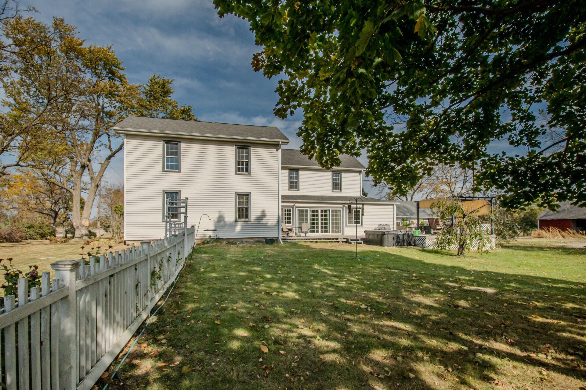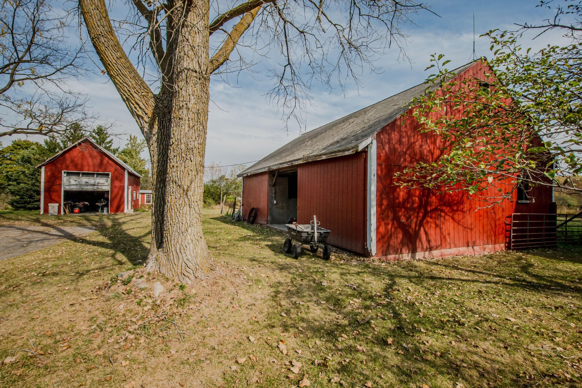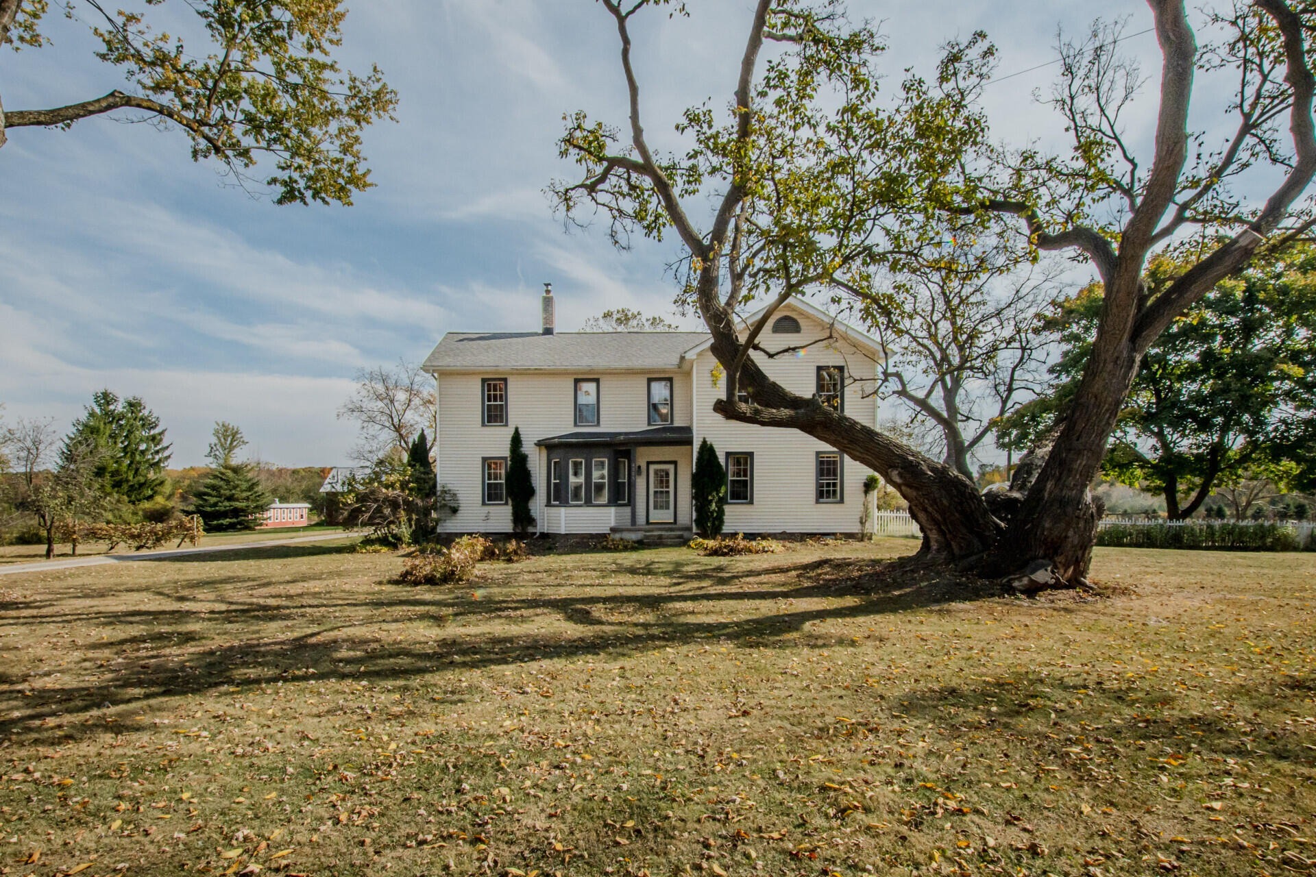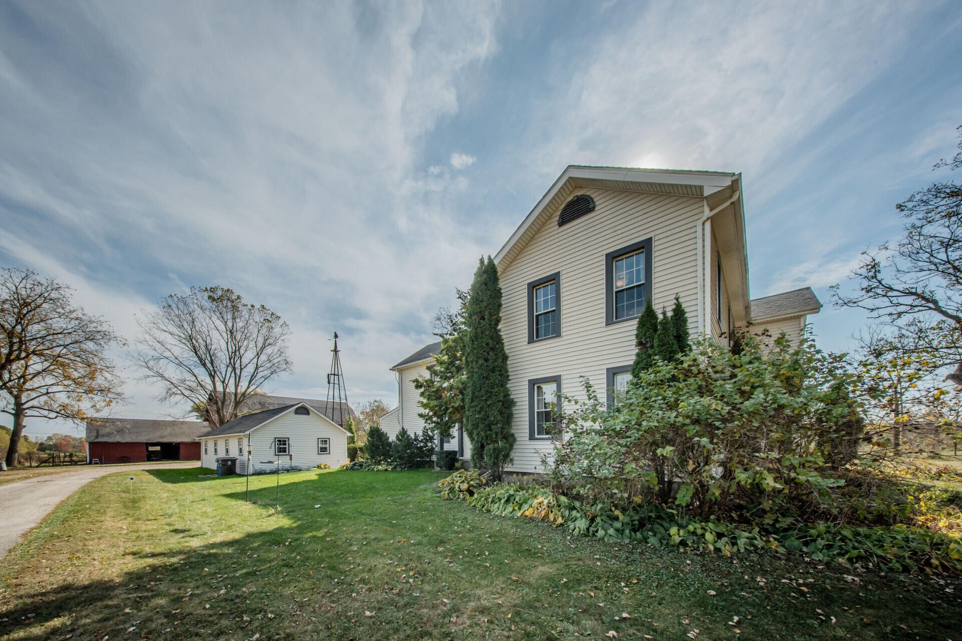 Experience timeless charm and modern comfort in this beautifully updated 1890s farmhouse, set on five serene acres just minutes from downtown Ann Arbor. The historic Morgan Farmhouse, expertly restored by Giraffe Design Build, offers over 3,000 sq. ft. of light-filled living space with five bedrooms, two baths, and a gourmet kitchen featuring custom cherry cabinetry and 100-year-old maple floors. Enjoy multiple living areas, a sunroom with deck and hot tub access, and thoughtfully updated baths. Outbuildings include a 20x40 garage with office, a striking 40x80 red gambrel barn, a historic horse stable with original craftsmanship, a powered workshop, and a chicken coop. Surrounded by nature preserves and wildlife, this working farm offers peaceful country living with city convenience, Ann Arbor schools, public water, and low Pittsfield Township taxes.