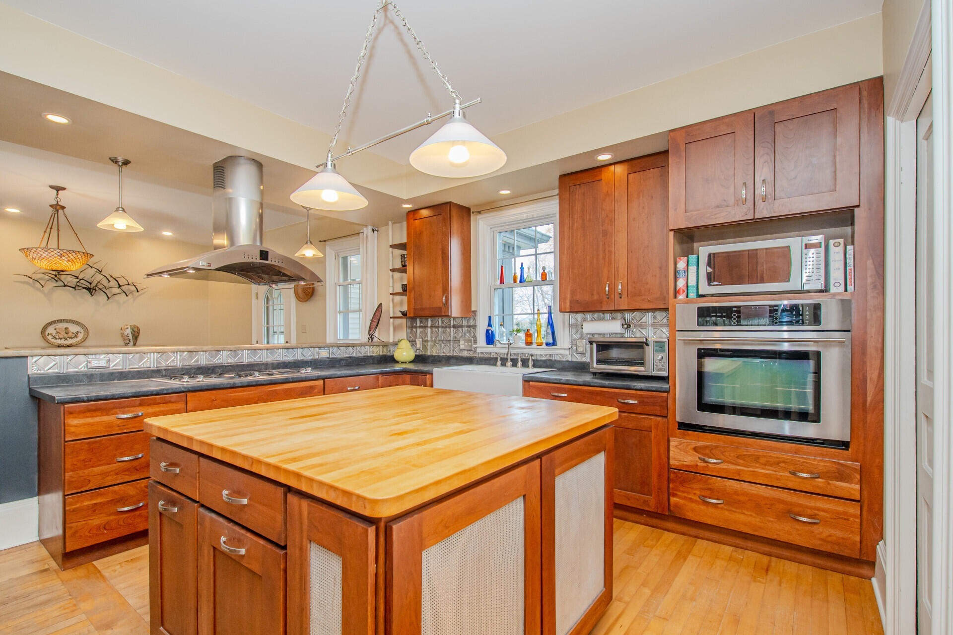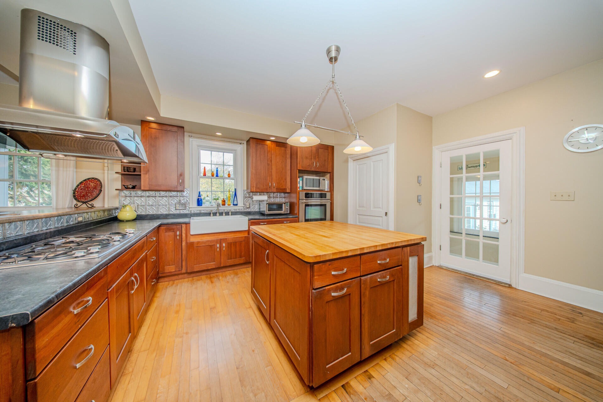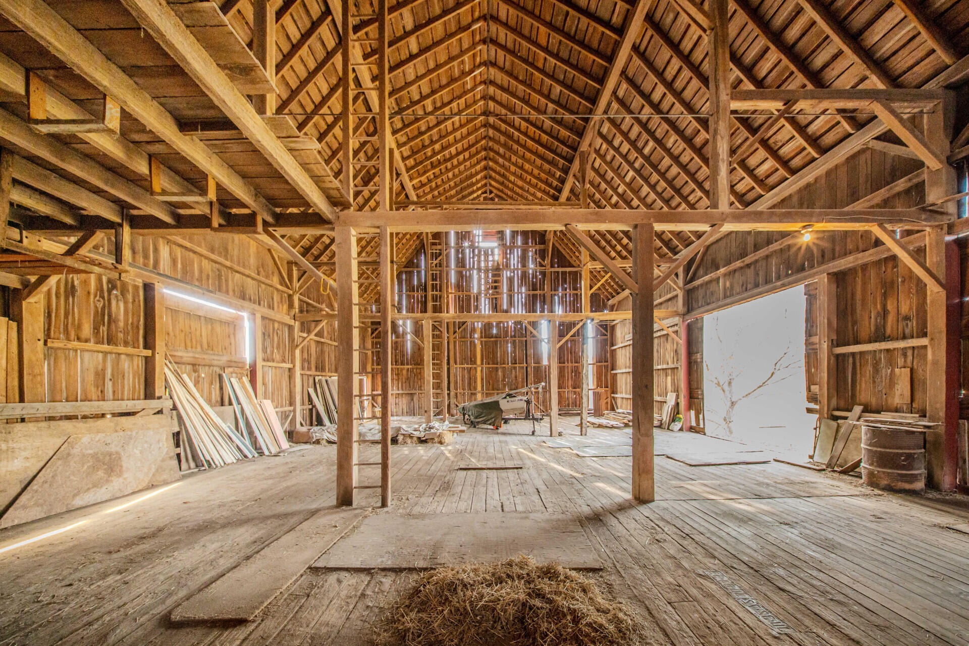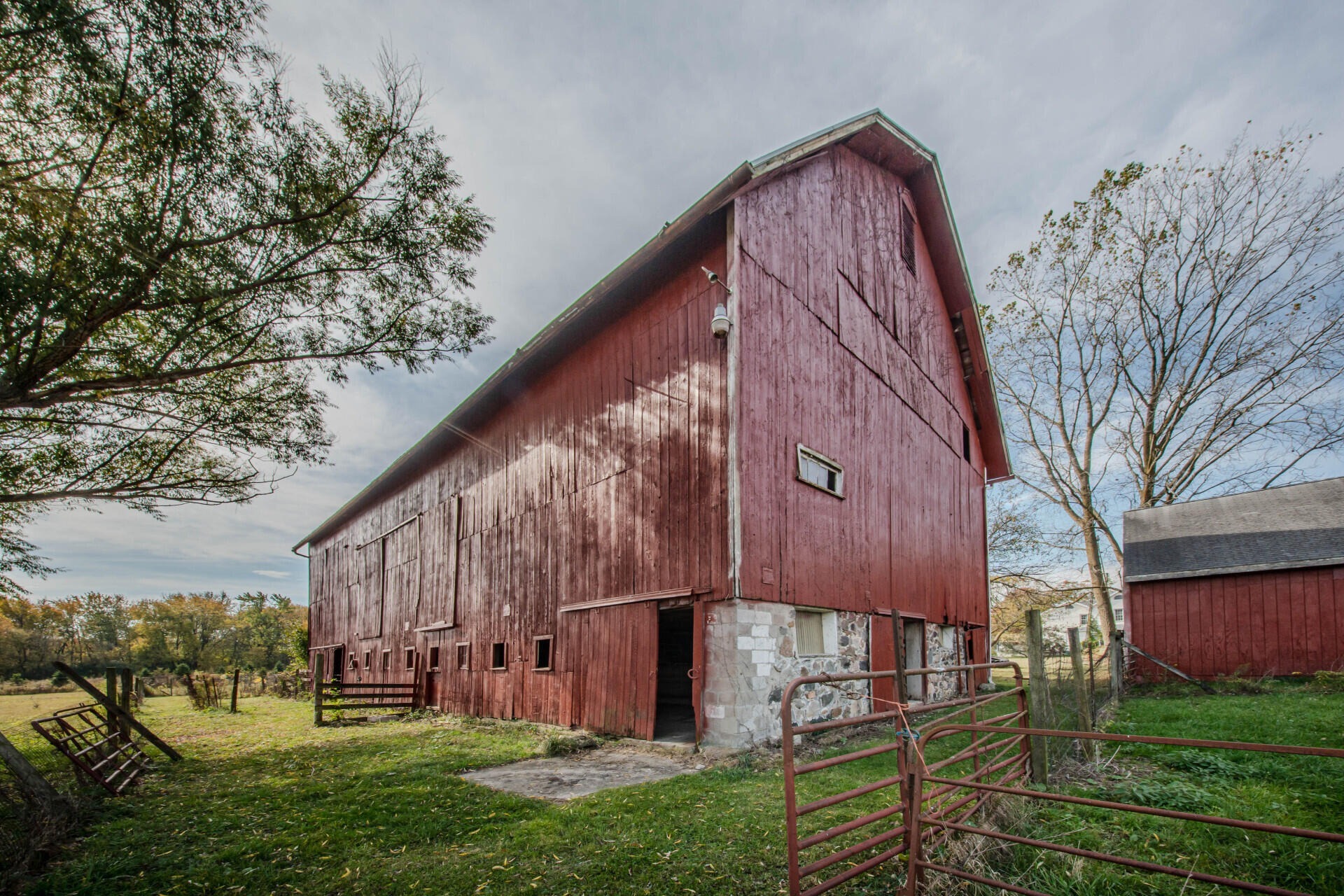 Experience timeless charm and modern comfort in this beautifully updated 1890s farmhouse, set on five serene acres just minutes from downtown Ann Arbor. The historic Morgan Farmhouse, expertly restored by Giraffe Design Build, offers over 3,000 sq. ft. of light-filled living space with five bedrooms, two baths, and a gourmet kitchen featuring custom cherry cabinetry and 100-year-old maple floors. Enjoy multiple living areas, a sunroom with deck and hot tub access, and thoughtfully updated baths. Outbuildings include a 20x40 garage with office, a striking 40x80 red gambrel barn, a historic horse stable with original craftsmanship, a powered workshop, and a chicken coop. Surrounded by nature preserves and wildlife, this working farm offers peaceful country living with city convenience, Ann Arbor schools, public water, and low Pittsfield Township taxes.