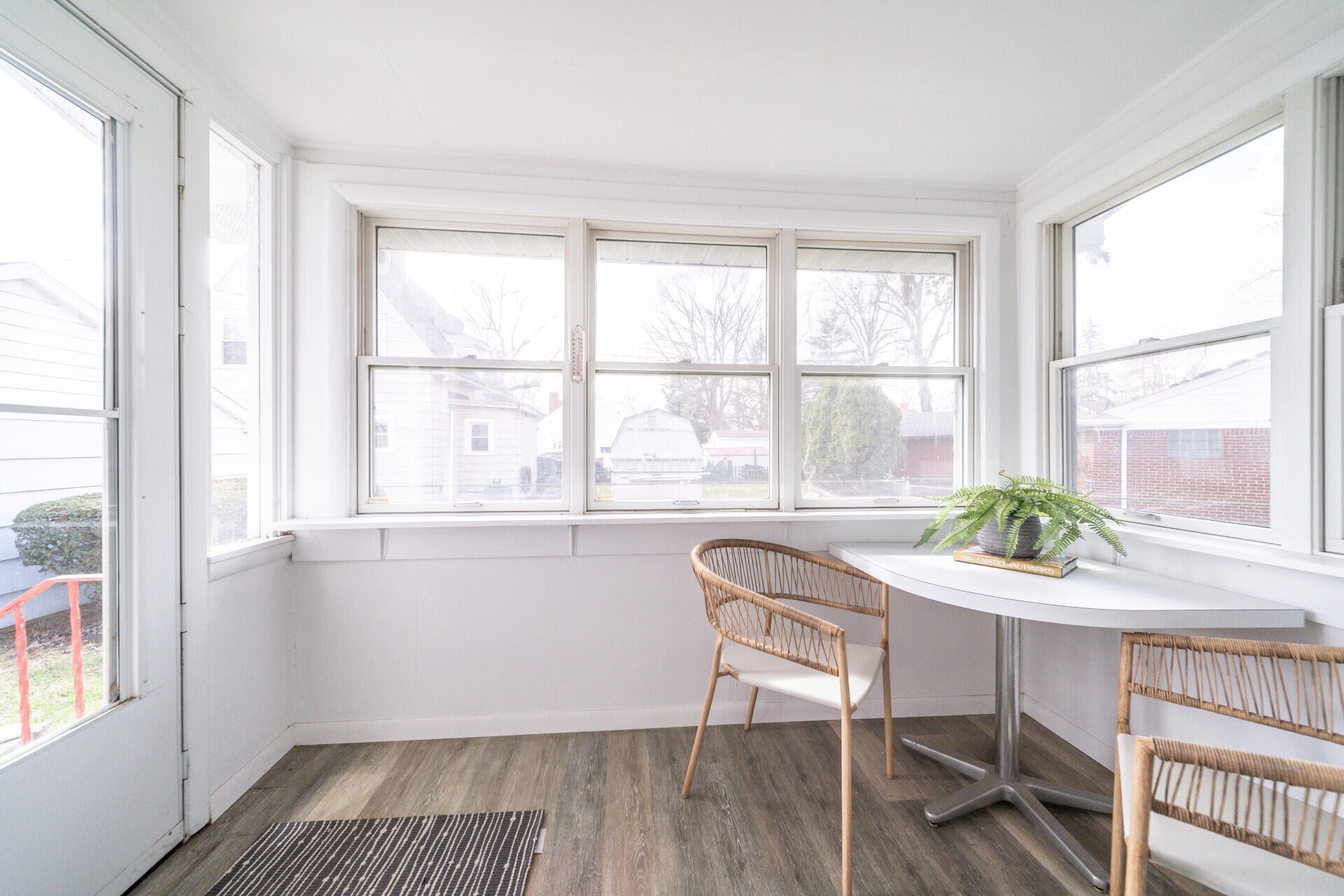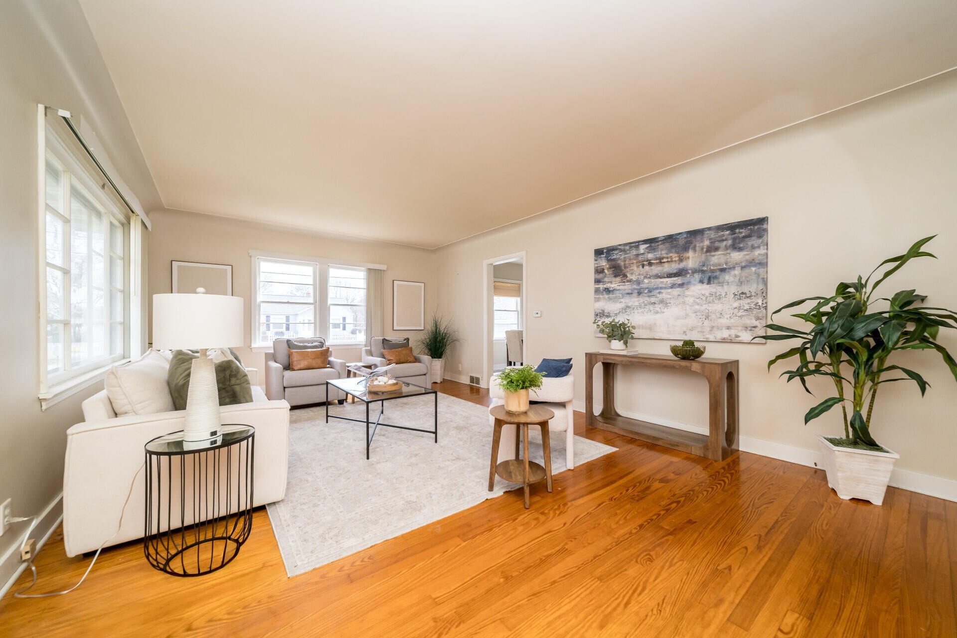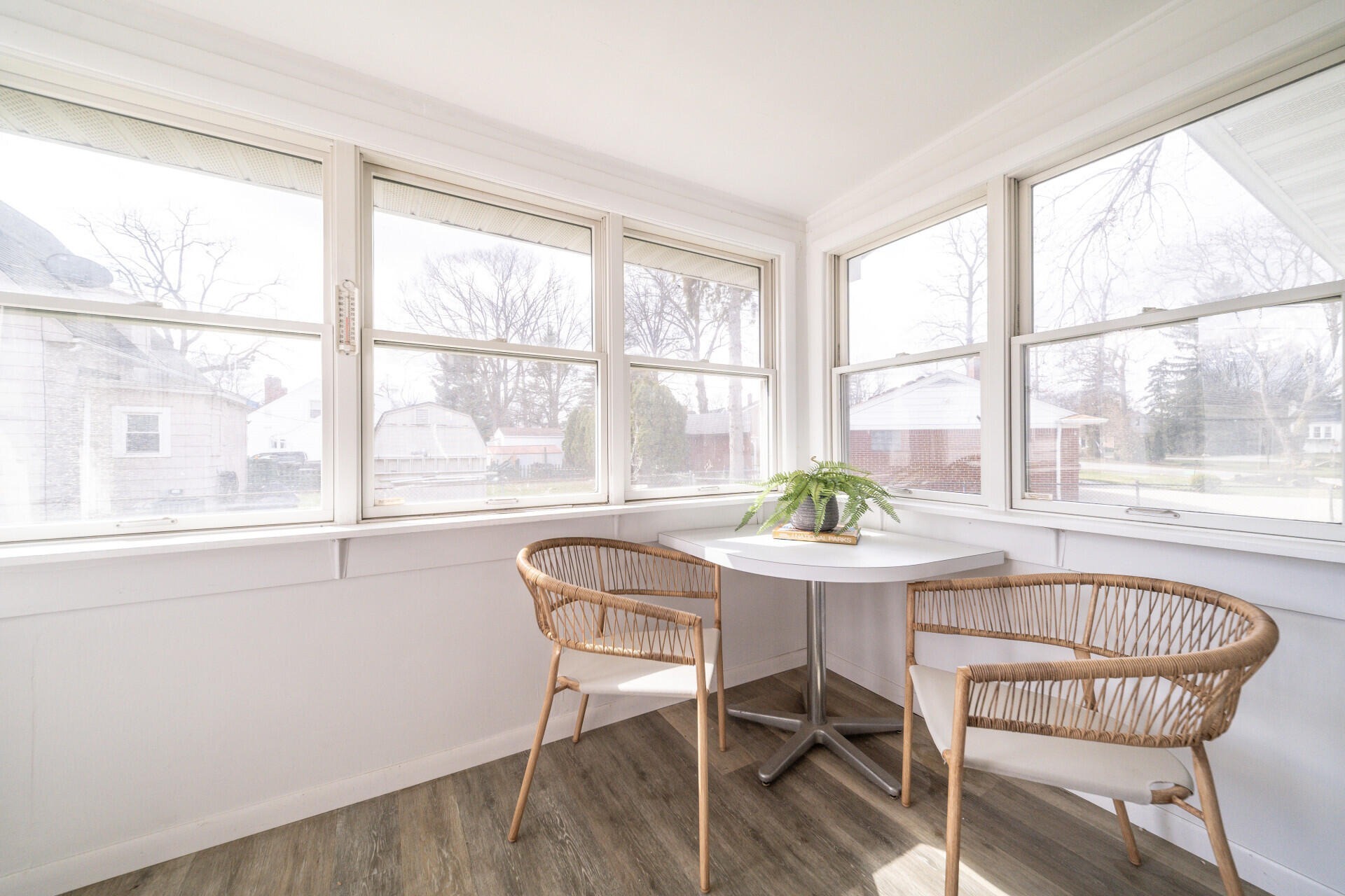Welcome home to this charming ranch set on a spacious, private lot. Inside, hardwood floors and large windows fill the main living area with natural light, while the dining space and updated kitchen offer stylish finishes, ample storage, and a bright view of the backyard. A sun-filled three-seasons room provides the perfect spot to relax and unwind. The home features four comfortable bedrooms and a full bath with classic tile details and convenient storage. An expansive unfinished basement offers plenty of room for storage or future living space. Recent updates include the HVAC system and roof, adding peace of mind. Outside, a detached two-car garage and an oversized driveway provide generous parking. Ideally located near a local elementary school and just minutes from Munson Park, this home blends comfort, space, and everyday convenience.