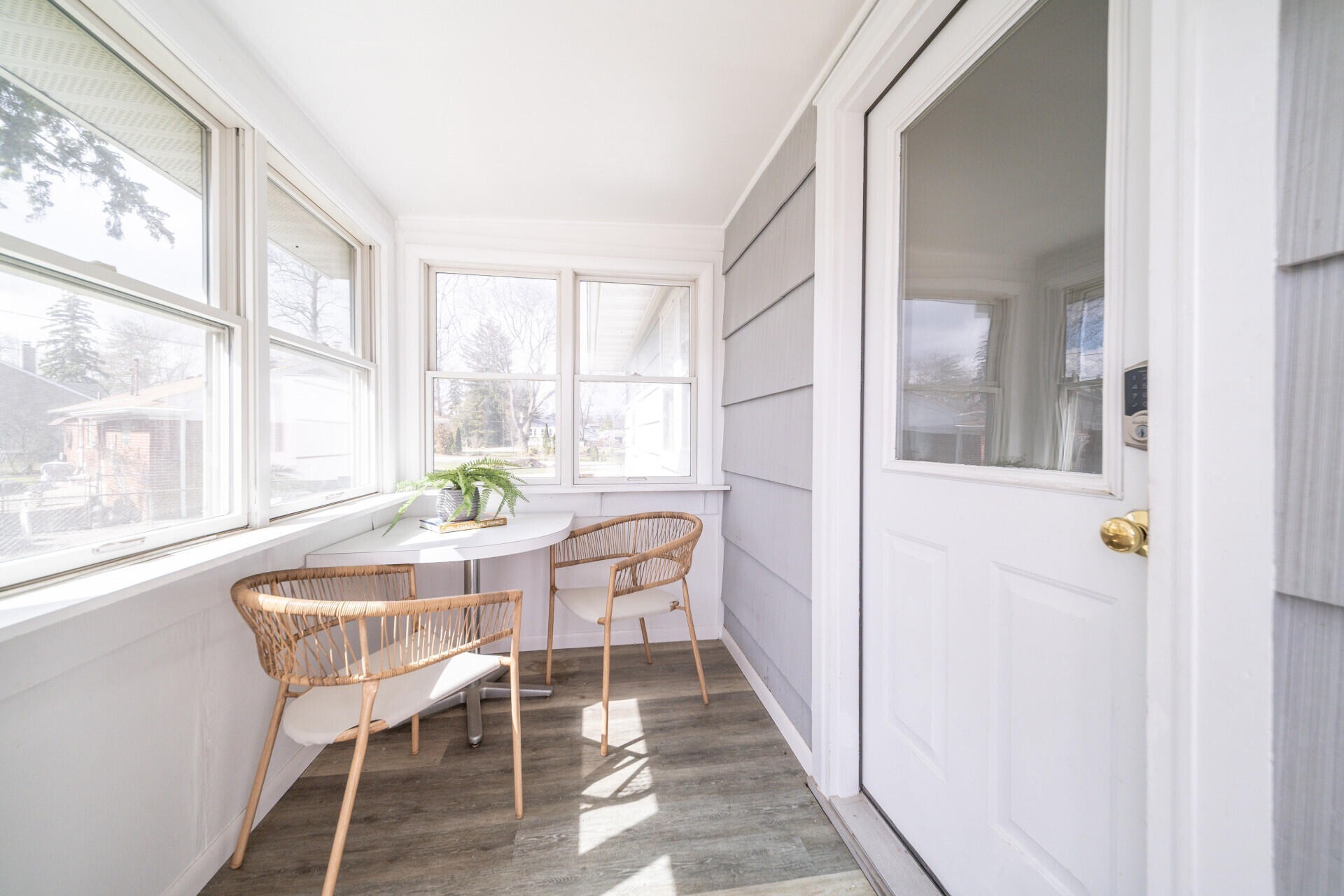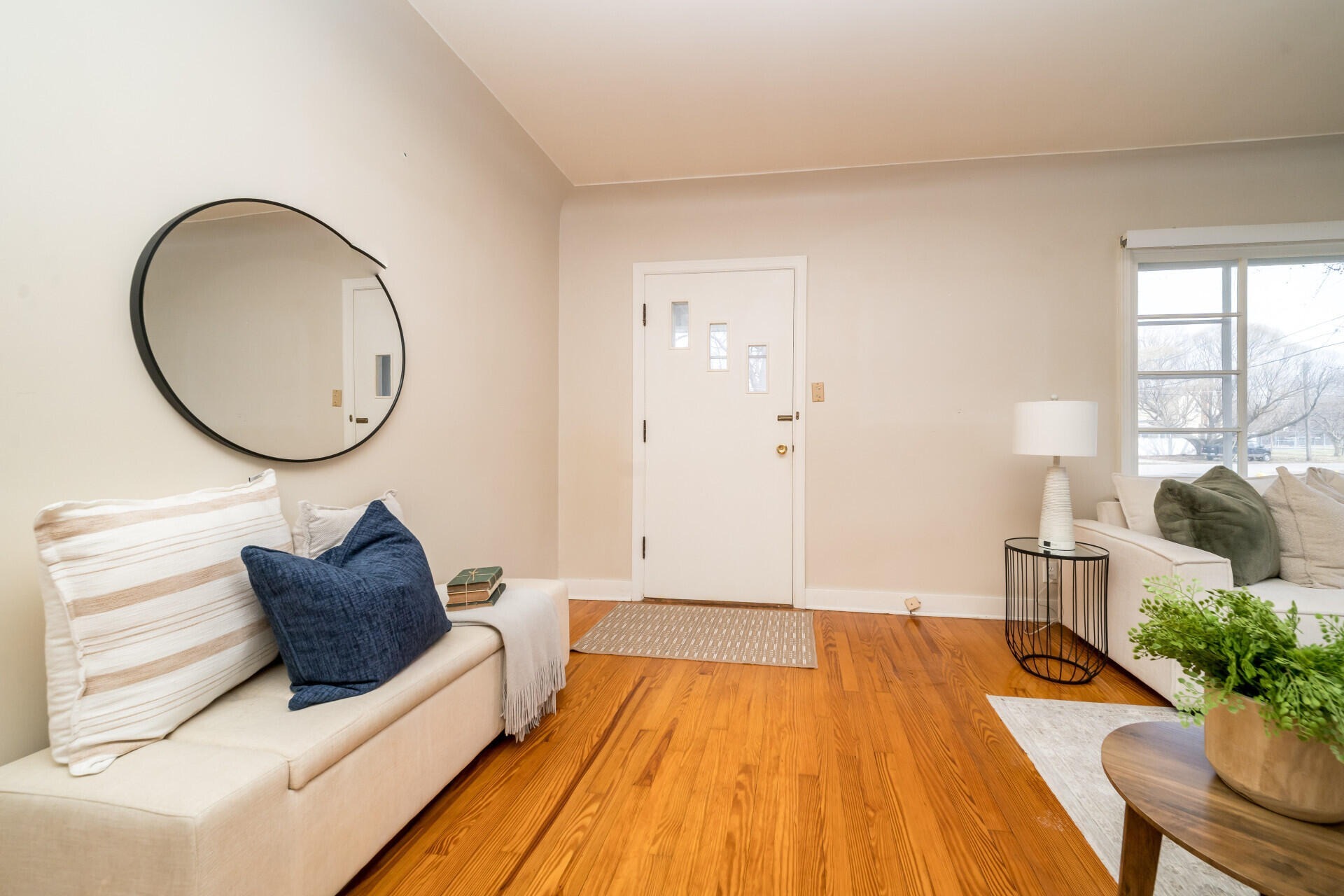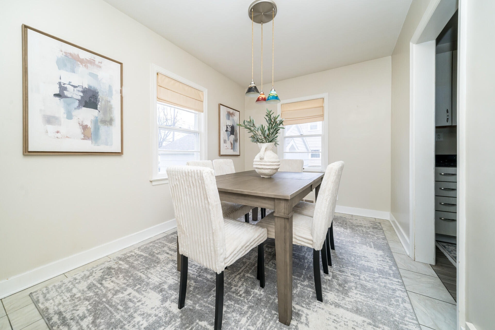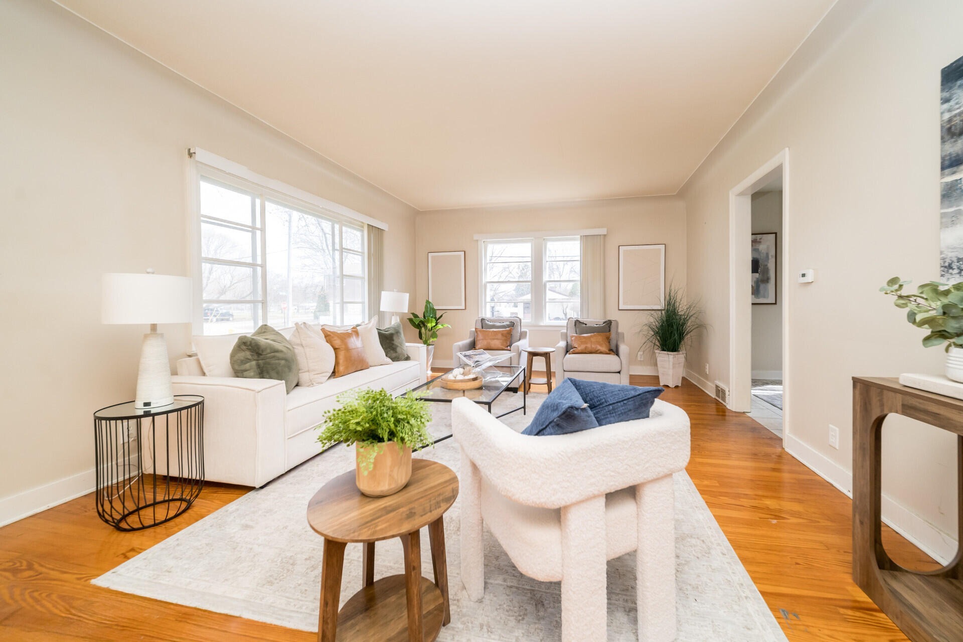 Welcome home to this charming ranch set on a spacious, private lot. Inside, hardwood floors and large windows fill the main living area with natural light, while the dining space and updated kitchen offer stylish finishes, ample storage, and a bright view of the backyard. A sun-filled three-seasons room provides the perfect spot to relax and unwind. The home features four comfortable bedrooms and a full bath with classic tile details and convenient storage. An expansive unfinished basement offers plenty of room for storage or future living space. Recent updates include the HVAC system and roof, adding peace of mind. Outside, a detached two-car garage and an oversized driveway provide generous parking. Ideally located near a local elementary school and just minutes from Munson Park, this home blends comfort, space, and everyday convenience.