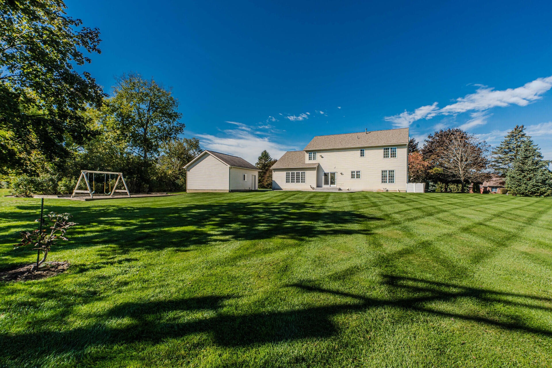 Welcome to this beautifully maintained 4-bedroom, 2.5-bath colonial on over an acre in the desirable Yorkshire Hills subdivision! Lovingly cared for by its original owner, this home offers numerous updates and timeless charm. The main level features hardwood and tile flooring, an updated kitchen with custom cherry cabinetry, granite countertops, and a large island, plus open-concept living and dining areas. A spacious laundry room and half bath complete the main floor. Upstairs, the primary suite includes a sitting area, a luxurious bath with custom tile shower, spa tub, and dual-sink granite vanity. Three additional bedrooms and a full bath complete the upper level. The unfinished lower level provides ample storage, while the landscaped backyard is a private retreat with mature trees, a play area, and a second garage—perfect for hobbyists or car lovers. Recent updates include a newer HVAC (2022), roof (2017), whole-house generator, irrigation system, and stamped concrete patio. Enjoy low York Township taxes, Saline schools, and a location just minutes from Downtown Saline and Ann Arbor. A rare find in a neighborhood that even allows split rail fences!
